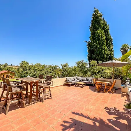 La villa Finca Tierra Sana Estepona se encuentra a una distancia de 4 km del Golf Flamingos e invita a los huéspedes a disfrutar de una terraza.